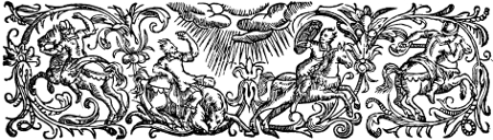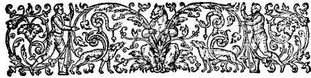 This was in the infancy of the art; but as it gradually emerged from its swaddling clothes, printers discovered various ways of increasing the beauty of the printed book. First they adopted a title-page, quite a modest thing at first, which for its brevity has been called a ‘Label’ title. Next they conceived that the appearance of the title-page would be improved if it had a border like the first pages of the old manuscripts. Then it occurred to them that it would look better if the printed matter were begun lower down on the page, leaving a blank space above. In course of time these blank spaces, and those which generally followed at the end of dedicatory epistles and such like, were ornamented, whatever was used for that purpose being called by the names of head or tail piece. Occasionally the printers even went so far as to fill up the spaces at the ends of paragraphs with[6] small ornaments, a wholly unnecessary labour which was soon dropped.