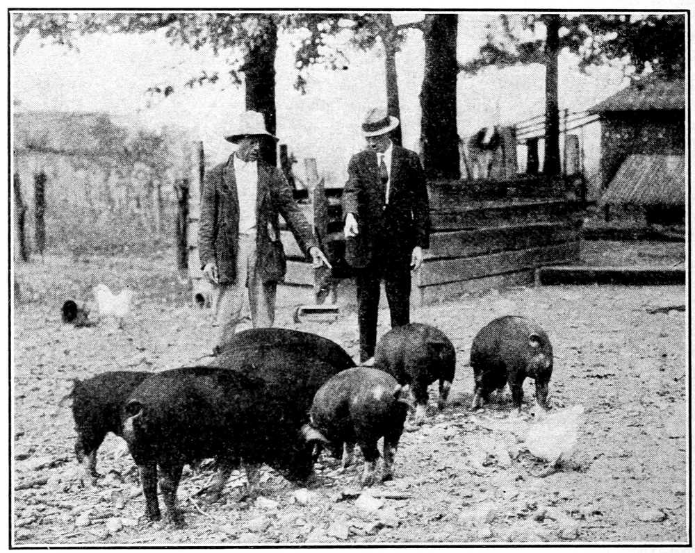 Fig. 4.—Negro county agricultural agent helping a farmer to select fattening hogs. Negro farmers desire helpful information on specific things that can be put into immediate use with noticeable results. In this respect, demonstration activities have rendered a valuable service in meeting their needs.