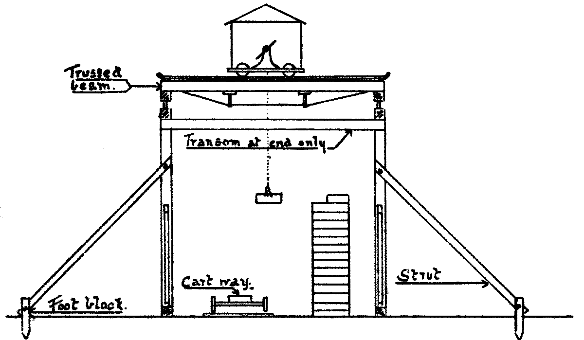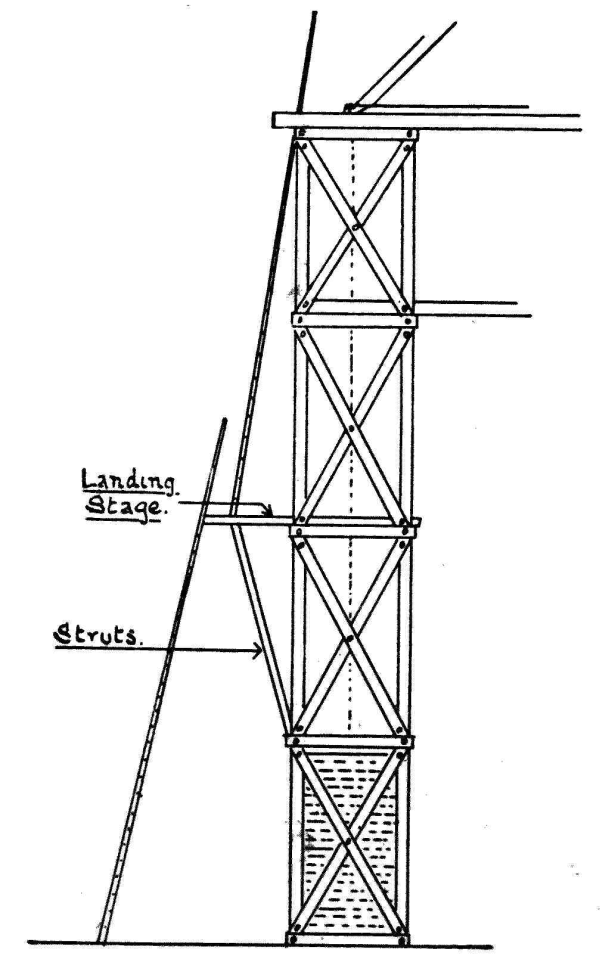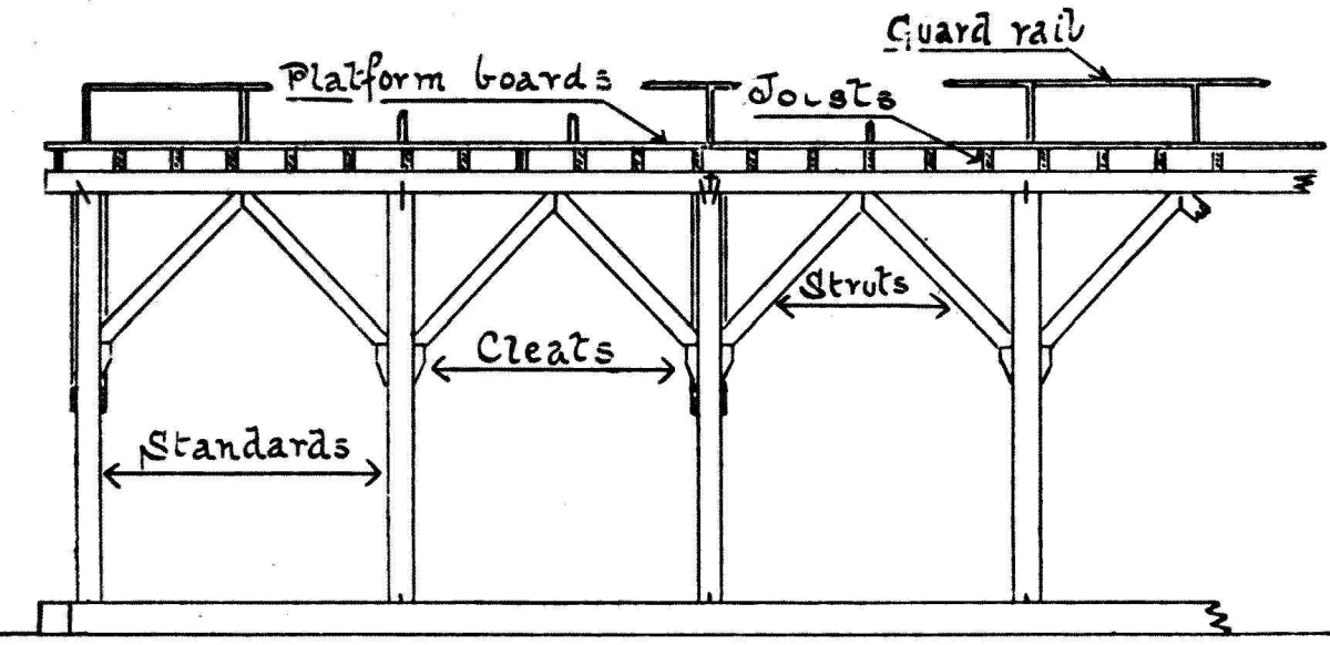 | 1. | Elevation of staging for derrick crane |
