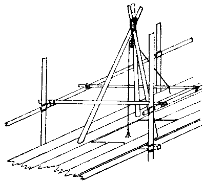 The practice of allowing workmen to erect scaffolds without the aid of expert supervision, as is generallyvi the case, is to be strongly deprecated. The architect, builder, or clerk of works, should in all cases be responsible for their erection—the risk of defective or unsafe work being thereby minimised, and an economy often effected in both labour and material.