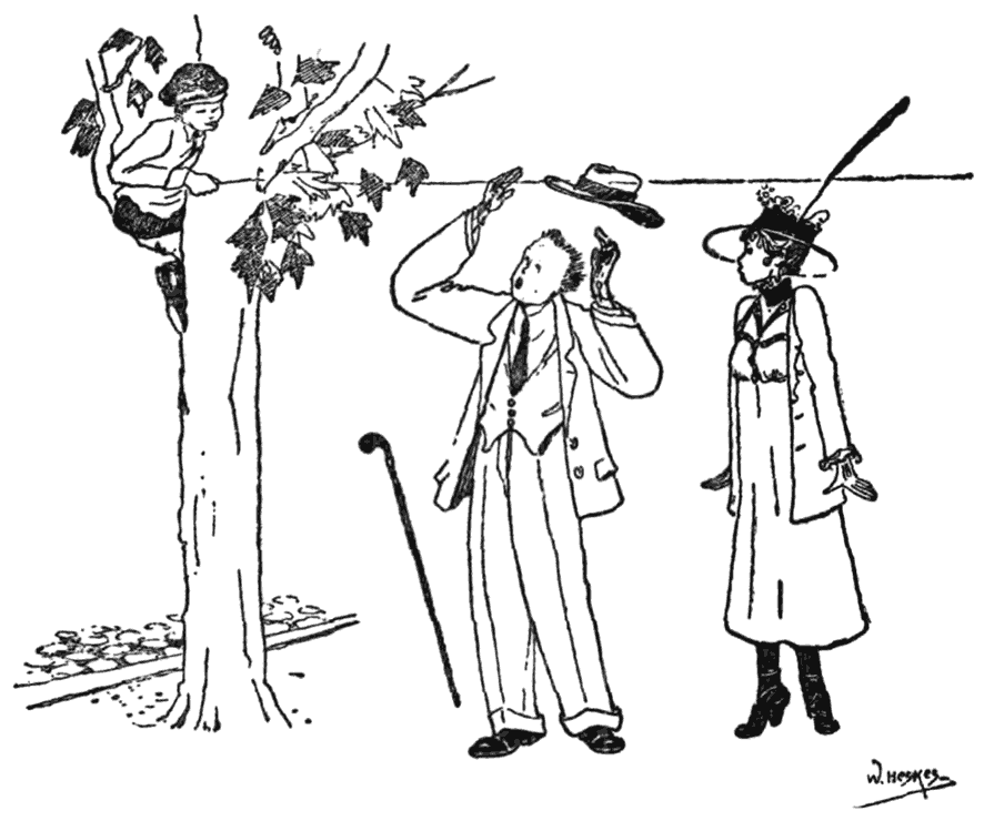 Er werd verder besloten, met de grootst mogelijke omzichtigheid te werk te gaan, want ze wilden lang plezier hebben van hun hol. Het was dus zaak, het heele suppoostenleger te slim af te zijn, en dit kon alleen bereikt worden door steeds posten uit te zetten, terwijl de anderen dan bij ’t geringste sein van dien post zorgden het hol juist aan den tegenovergestelden kant te verlaten, als waarvan de suppoost kwam. Verder moest er een post uitgezet bij den ingang van den dierentuin om te kunnen waarschuwen als er familieleden kwamen [5]controleeren wat hun jongens uitvoerden.
