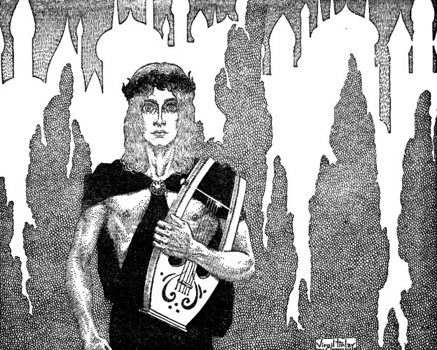 When the men of Teloth heard these things they whispered to one another; for though in the granite city there is no laughter or song, the stern men sometimes look to the Karthian hills in the spring and think of the lutes of distant Oonai whereof travelers have told. And thinking thus, they bade the stranger stay and sing in the square before the Tower of Mlin, though they liked not the color of his tattered robe, nor the myrrh in his hair, nor his chaplet of vine-leaves, nor the youth in his golden voice. At evening Iranon sang, and while he sang an old man prayed and a blind man said he saw a nimbus over the singer's head. But most of the men of Teloth yawned, and some laughed and some went away to sleep; for Iranon told nothing useful, singing only his memories, his dreams, and his hopes.