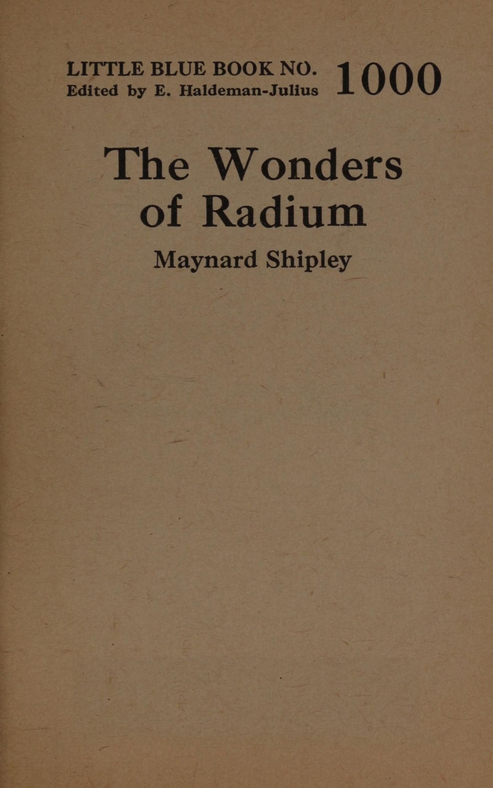 | II. | Everyday Uses of Radium | 16 |