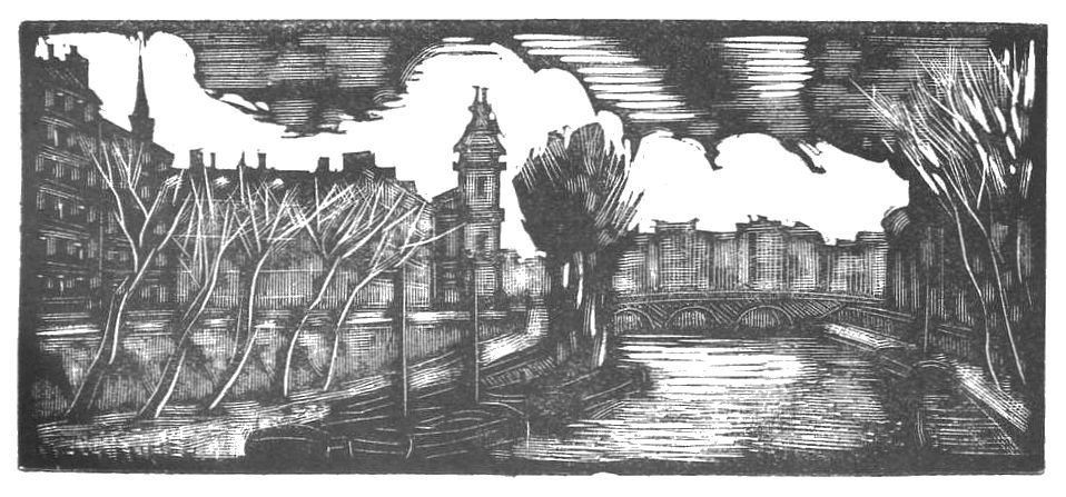 Par un beau jour, au crépuscule, il faut l’admirer du Pont des Arts. Non qu’on le saisisse en son entier : il est caché sur deux de ses faces ; les autres fuient de profil ; mais le monument dans sa largeur emplit toute la Cité ; il la couvre d’une rive à l’autre ; il est le roi de cette île. Elle-même est trop mince : il la déborde ; il a l’air posé dans l’eau ; du côté nord, il n’y a pas place pour une berge. Près de lui, les arbres du Vert-Galant paraissent frêles ; les maisons du quai des Orfèvres sont étriquées ; et Notre-Dame se dérobe avec sa seule flèche comme suprême audace. Encore n’est-elle rien derrière celle de la Sainte-Chapelle, si fine, si aiguisée et si hardie qu’elle est à la fois une prière, un désir et un défi. Prière pour les murs qu’elle domine et qui voient de telles étrangetés ; désir de s’élancer d’un milieu détestable ; défi, car elle, du moins dans cette demeure, aime le ciel et la liberté.
