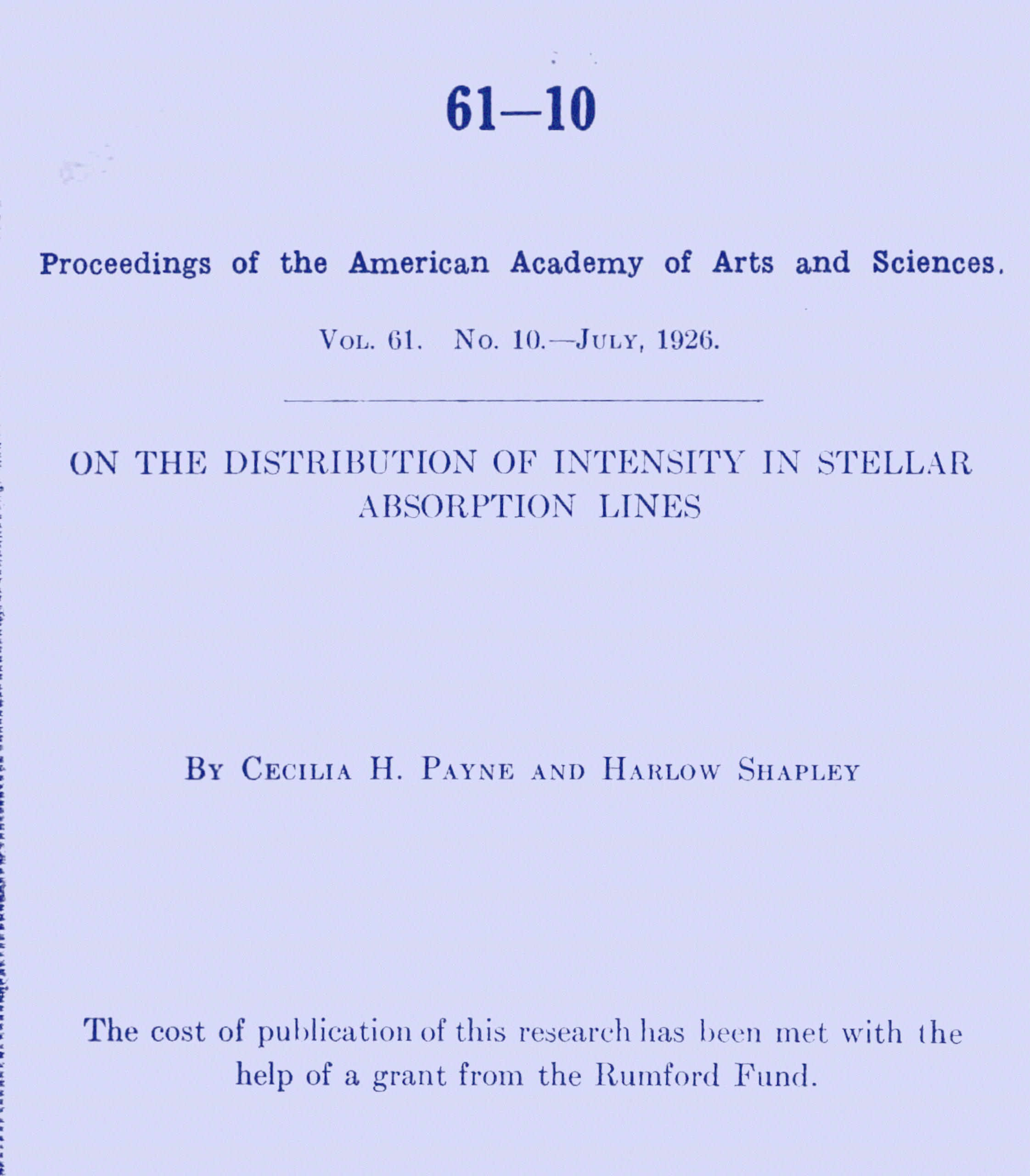 1. The cost of publication of this research has been met with the help of a grant from the Rumford Fund.