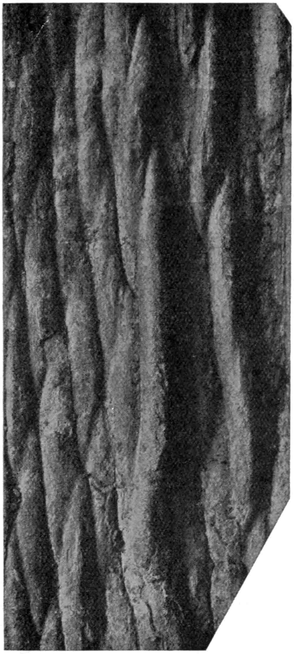 In a recently published and interesting paper on ‘Some Xerophytic Leaf-structures in Mesozoic Plants,’ Dr Halle[1637] makes some important additions to our knowledge of Pseudocycas. He agrees with Miss Holden’s views with regard to the use of the generic names Pseudocycas and Cycadites, but dissents from her interpretation of the median groove as the result of shrinkage of a midrib. Part of the evidence presented by Halle is based on the structure of the leaf-cuticle as shown in microtome sections[1638]. He found that a distinct median groove is always present on the pinnae of Pseudocycas insignis and other species. If the groove were due to collapse of the tissue of a true median rib the presence of stomata—which in P. insignis are confined to the middle line of the lamina—below the vein would be an unusual feature. He found no indication of a median vein or of any vascular tissue. All that is revealed by an examination of the cuticle is that the lamina has a well-defined groove bounded by prominent ridges, and in Pseudocycas Roemeri the groove is deeper and is formed by the bending-back of the lamina. The stomata are practically confined to the groove and in P. insignis and P. Steenstrupi an additional protection against excessive transpiration was afforded by elongated papillae.
