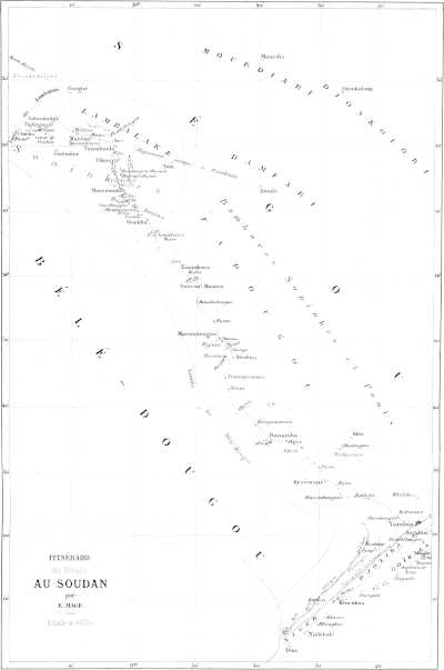 En réponse à mon projet, je reçus, après quelque temps, l’avis officieux que M. le colonel Faidherbe, que l’on rappelait au gouvernement du Sénégal avec le grade de général, désirait faire explorer par terre la ligne qui joint nos établissements du Haut-Fleuve au haut Niger, et qu’il avait parlé de moi comme lui paraissant très-capable de remplir cette mission.
