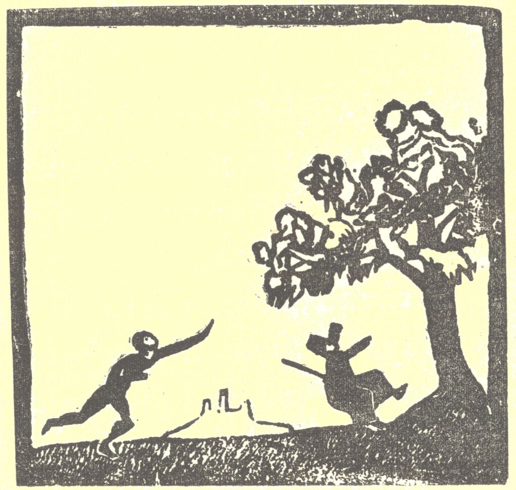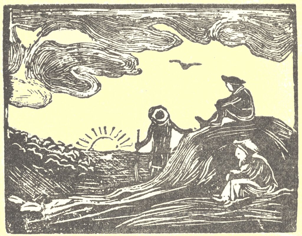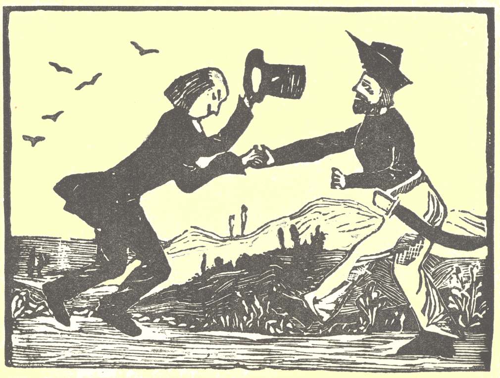 ‘If only we could have illustrations,’ said the publisher longingly. But his ‘cuts’ had all been used in ‘Black Canyon, or Life in the Far West.’ Illustrations had to be p. xiput by as a dream impossible of fulfilment. No, not impossible! Louis, who was a man of infinite resourcefulness (he could paint better theatre-scenes than any one could buy), said that he would try to carve some pictures on squares of fretwood. The word fretwood seems as unknown nowadays as the thing itself; it was an extremely thin piece of board with which one was supposed to make works of art with the help of pasted-on patterns, an aggravating little saw, and the patience of Job. . . . Well, Louis cut out a small square of fretwood, and in a deeply-thoughtful manner applied himself to the task. He had only a pocket-knife; real tools came later; but he was impelled by a will to win that carried all before it. After an afternoon of almost suffocating excitement—for the publisher—he completed the engraving that accompanies the poem: ‘Reader, your soul upraise to see.’ But it had yet to be mounted on a wooden block in order to p. xiiraise it to the exact level of the type. At last this was done. A proof was run off. But the impression was unequal. Oh, the disappointment! Author and publisher gazed at each other in misery. But woman’s wit came to the rescue. Why not build it up with cigarette papers? ‘Bravo, Fanny!’ The author set to work, deftly and skilfully. Then more proofs, more cigarette-papers, more running up and down stairs to the little boy’s room, which in temperature hovered about zero. But what was temperature? The thing was a success. The little boy, entranced beyond measure, printed copy after copy from the sheer pleasure of seeing the wet ink magically reproducing the block.