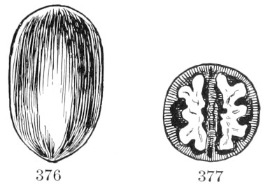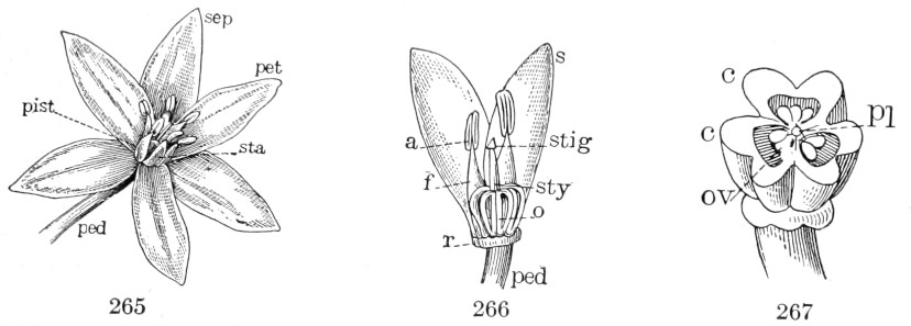Principles of classification.—All the known plants in the world, numbering not less than one hundred and twenty thousand species of the seed-bearing kind alone, are ranged according to certain resemblances of structure, into a number of great groups known as families or orders. The names of these families are distinguished by the ending aceæ; the rose family, for instance, are the Rosaceæ; the pink family, Caryophyllaceæ; the walnut family, Juglandaceæ, etc. Each of these families is divided into lesser groups called genera (singular, genus), characterized by similarities showing a still greater degree of affinity than that which marks the larger groups or orders; and finally, when the differences between the individual plants of a kind are so small as to be disregarded, they are considered to form one species; all the common morning-glories, for instance, of whatever shade or color, belong to the species Ipomea purpurea. The small differences that arise within a species as to the color and[Pg 365] size of flowers, and other minor points, constitute mere varieties, and have no special names applied to them. The line between varieties and species is not clearly defined, and in the nature of things can never be, since progressive development, through unceasing change, is the law of all life.