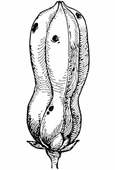 During the process of digestion the different kinds of food are acted upon and made soluble by certain chemical ferments, which are secreted in plants for the purpose. The digestion of starch, the most abundant of plant foods, is effected by diastase, a common ferment obtained from germinating[Pg 7] grains of barley, wheat, corn, rice, etc. By the presence of diastase starch is converted into grape sugar, a substance which is readily soluble in water, and which can be diffused easily through the tissues of the plant to any part where it is needed. In this way food travels from the leaf, where it is made, to the seed, where the sugar is generally reconverted into starch and stored up for future use, though sometimes, as in the sugar corn and sugar pea, it remains in part unchanged. The kernels of this kind of corn can be distinguished readily from those of the ordinary starch corn, after maturity, by their wrinkled appearance, owing to their greater loss of water in drying.