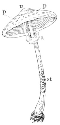 2. Notice the different kinds of mushrooms you find growing wild. Observe the difference between those that grow on the ground and those that grow on logs, stumps, and trees; between those found in the woods and those in open ground. Find out how those on the ground get their nourishment. Uncover the mycelium, and notice the extent of its surface.[Pg 363] Examine the soil and find out if it contains anything upon which they could feed. Note the prevalence of shelf fungi on trees. Examine the condition of the wood where they grow, and decide in what ways they injure their hosts. Notice whether they abound most on healthy or on decaying trunks and boughs, and decide whether this is because the fungus prefers that kind of host, or whether the injury it does causes the decay, or whether both causes operate together. Notice what fungi grow on different trees, and study their preferences in this respect.