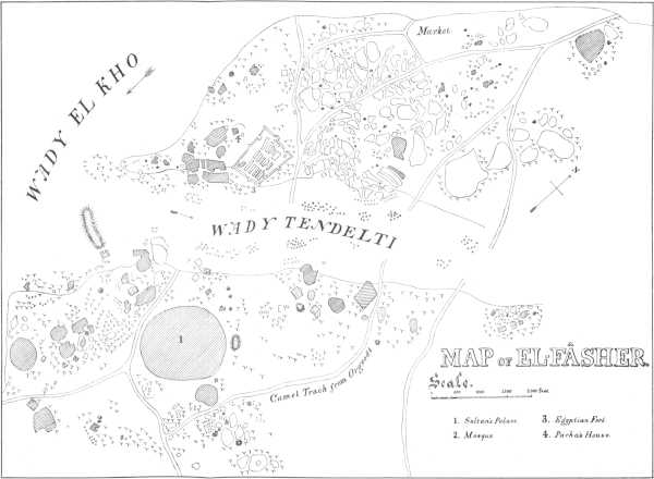 Darfoor is an oasis, or rather a cluster of oases, in the south-eastern part of the great desert of Sahara. The country was annexed to the Egyptian dominions at the close of the year 1874; and, in the following year, owing to reports of its extraordinary fertility, it was decided by Ismael Pasha, then Khedive of Egypt, that a survey should be made for a proposed line of railway to El Fasher, or Tendelti, its capital town.