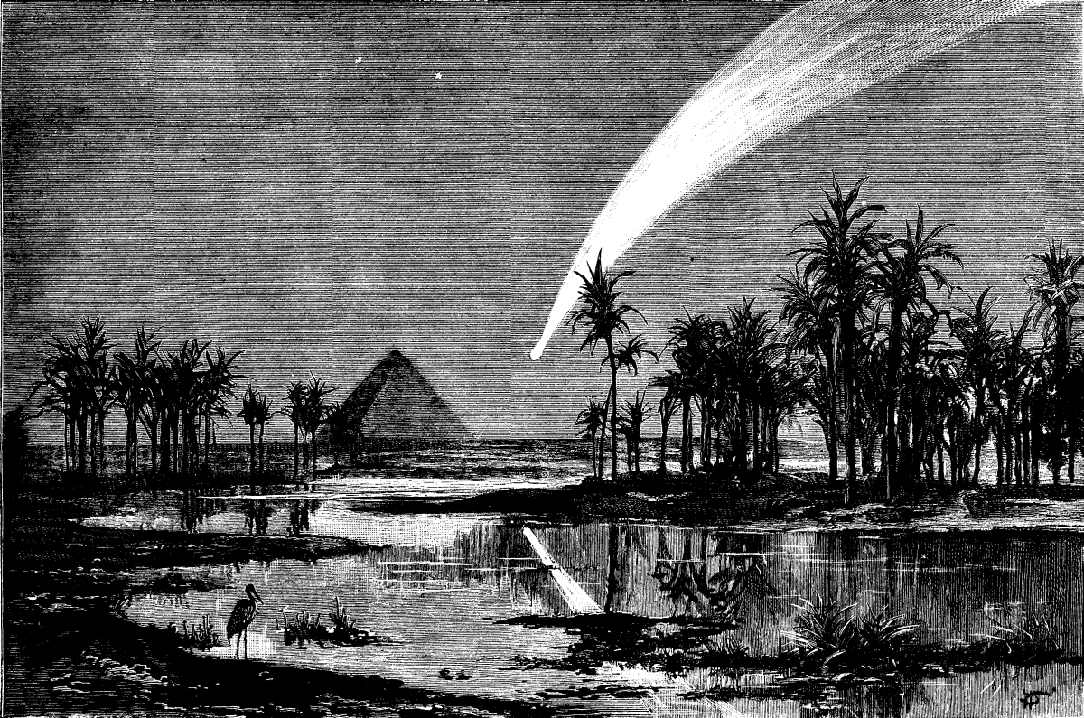 THE COMET AS SEEN FROM THE GREAT PYRAMIDS, NEAR CAIRO, EGYPT.